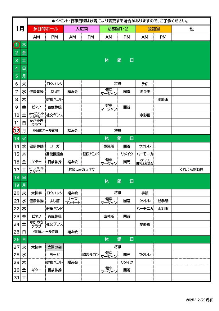 年末年始の休館日にご注意ください。