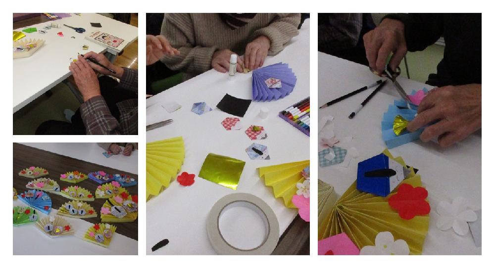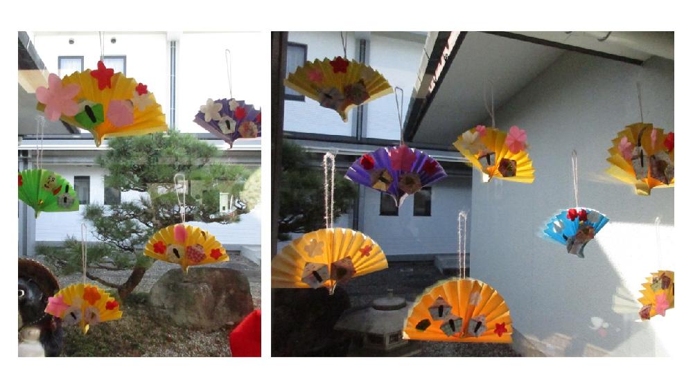 画用紙で作った扇に飾り付け。