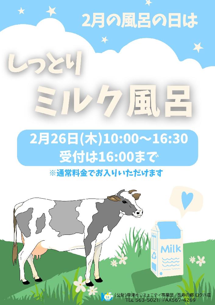 2月のロクハ風呂の日は「ミルキー風呂」です。
